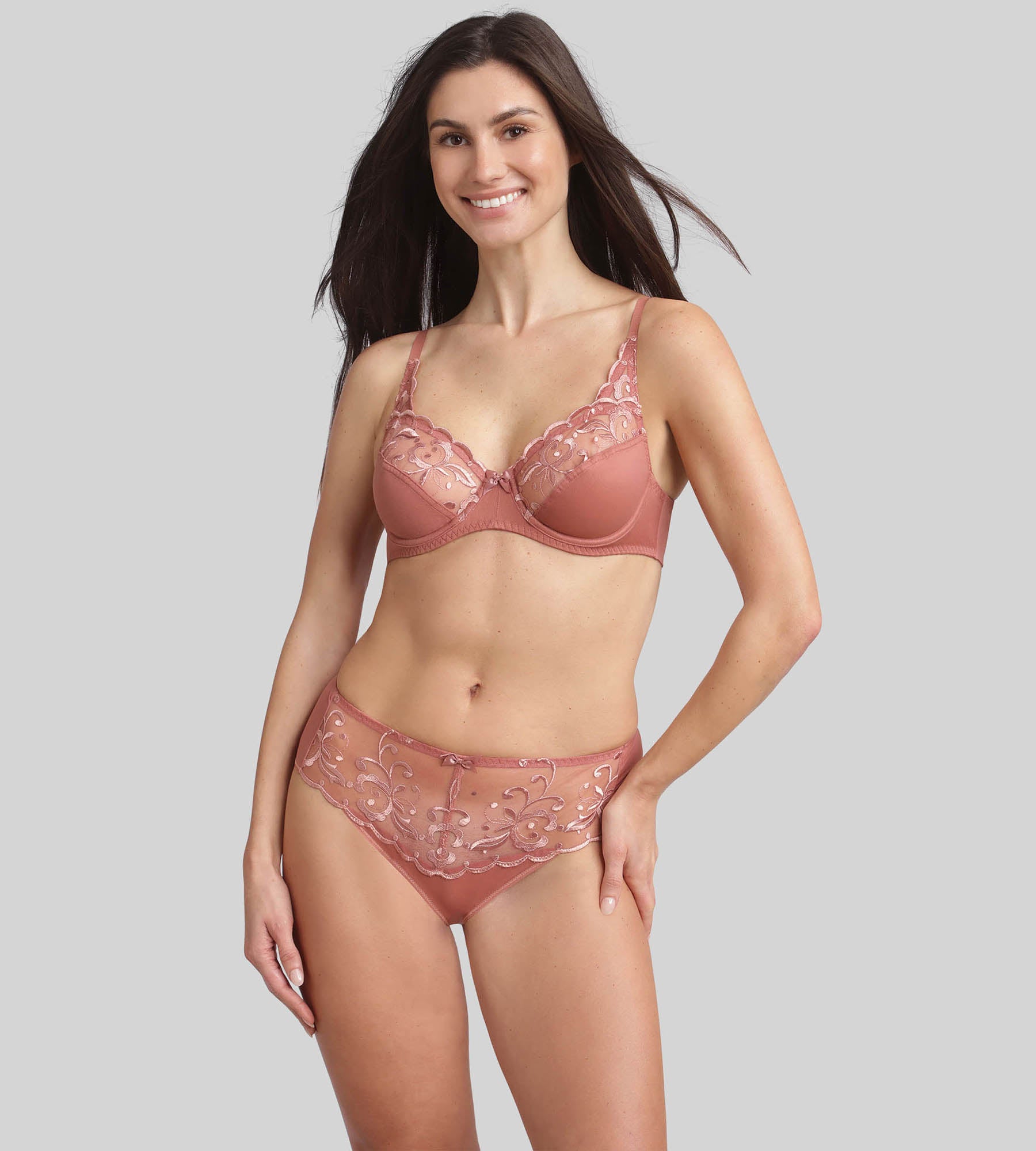 Associez cette culotte au soutien-gorge emboîtant cannelle Essential Elegance Broderie pour un ensemble coordonné, confortable et élégant, idéal pour toutes les occasions.