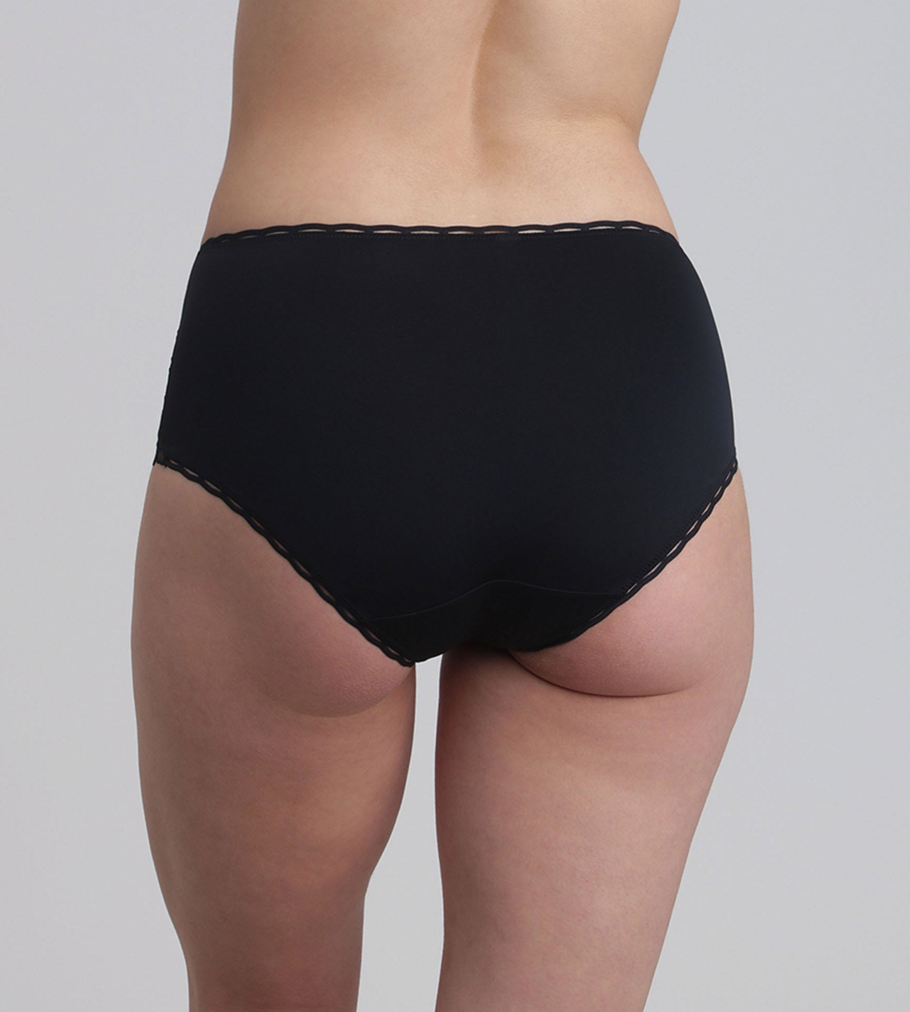 Vous allez adorer la nouvelle culotte noire Cœur Croisé conçue avec 80% de matières recyclées. Confortable et féminine à la fois, elle sera votre compagnon idéal pour toutes les saisons. Son mélange de matières : dentelle sur le devant et microfibre douce sur l'arrière rendent cette culotte féminine et agréable à porter.