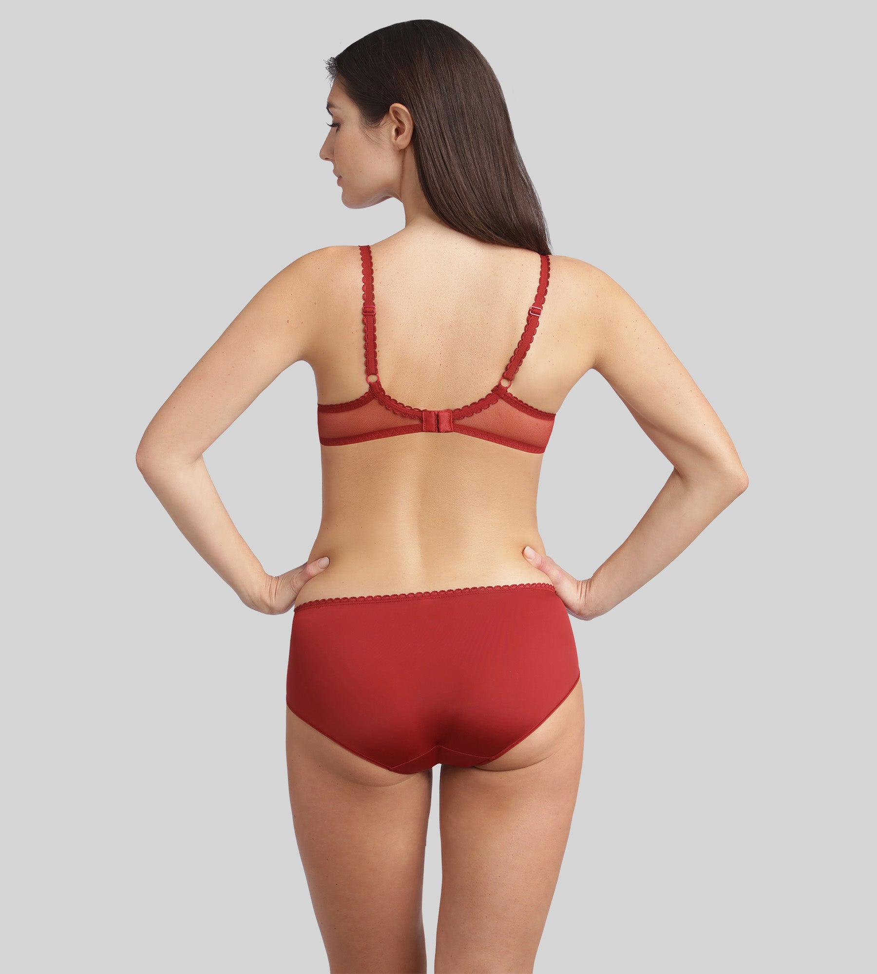 Pour un ensemble coordonné, portez cette culotte avec le soutien-gorge rouge velours Flower Elegance Recyclé et profitez d’une parure féminine et écoresponsable.