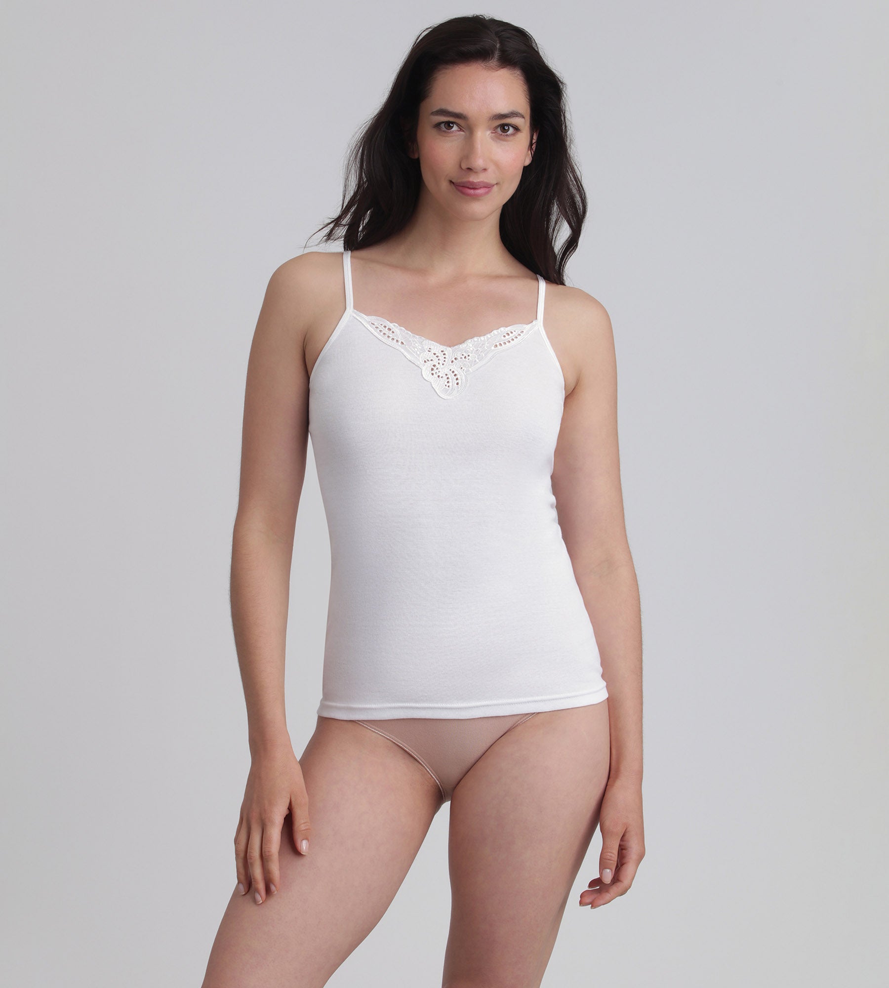 Ce débardeur féminin s'associe joliment avec une culotte midi ou maxi en coton de la collection Coton Bio ou avec une culotte en dentelle. Ou bien, faites preuve de fantaisie en dépareillant le top avec, par exemple, une culotte noire !