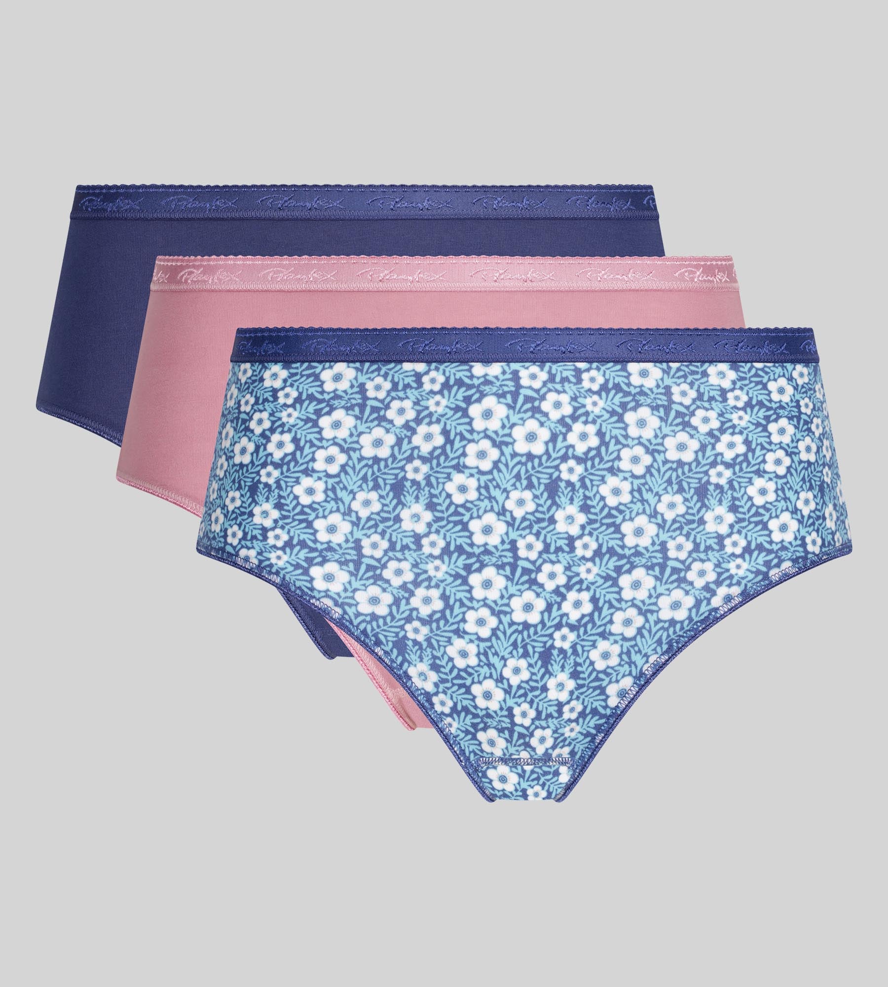 - Lot de 3 culottes : bleu, imprimé azur et rose orchidée
