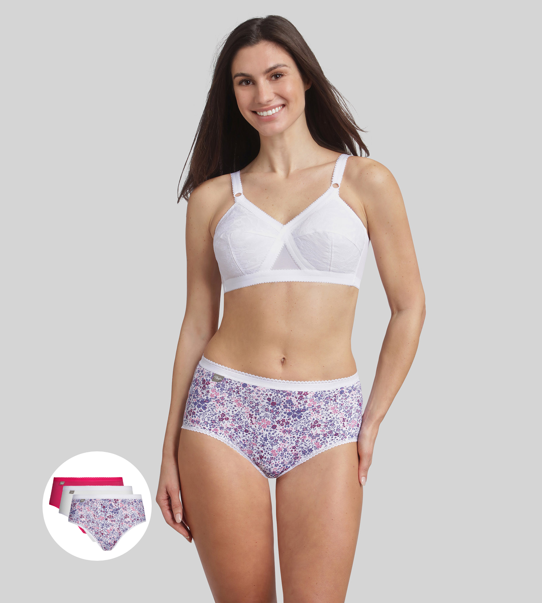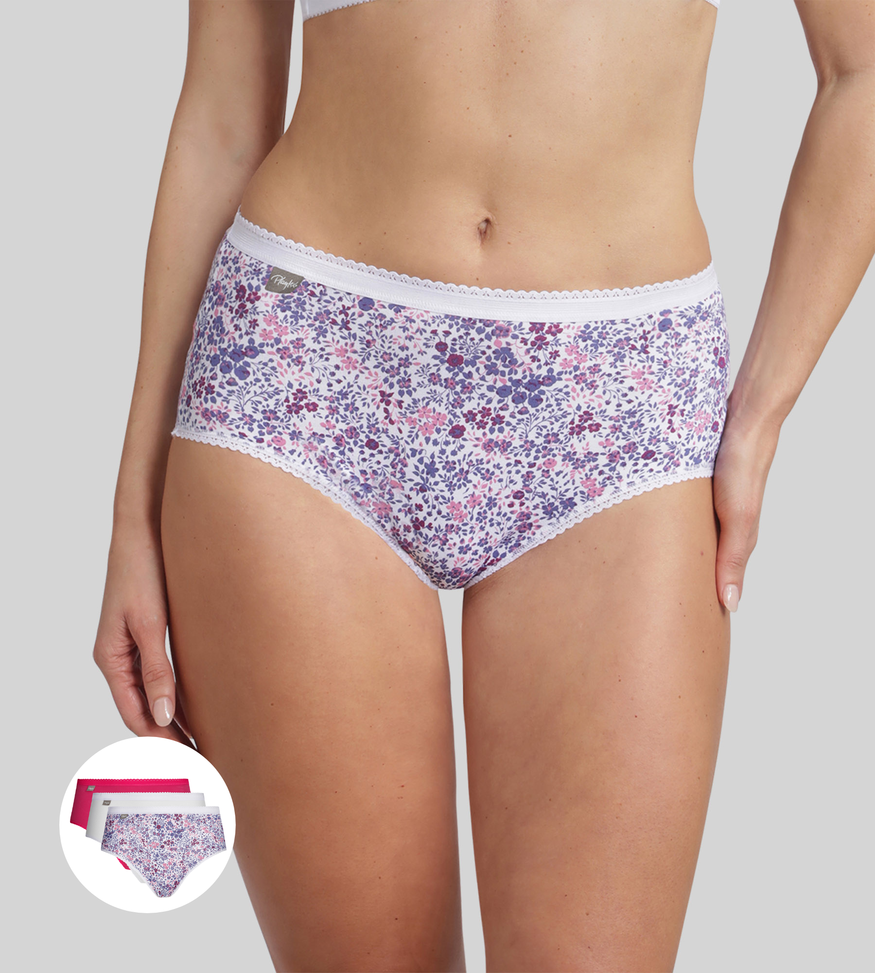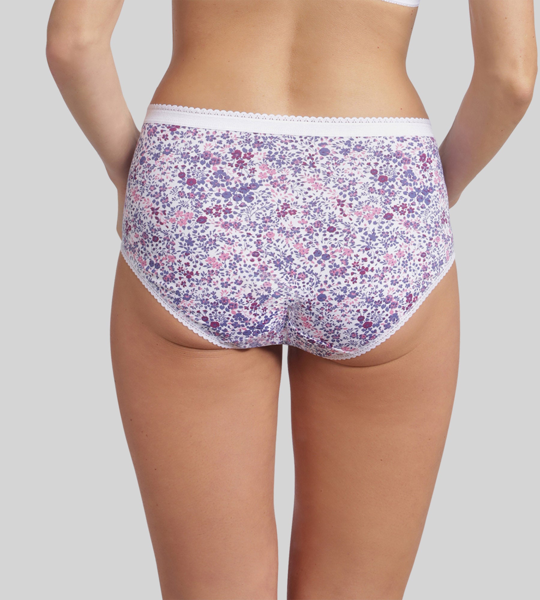 Lot de 3 culottes hibiscus, blanc et imprimé fleuri violet Cotton Stretch