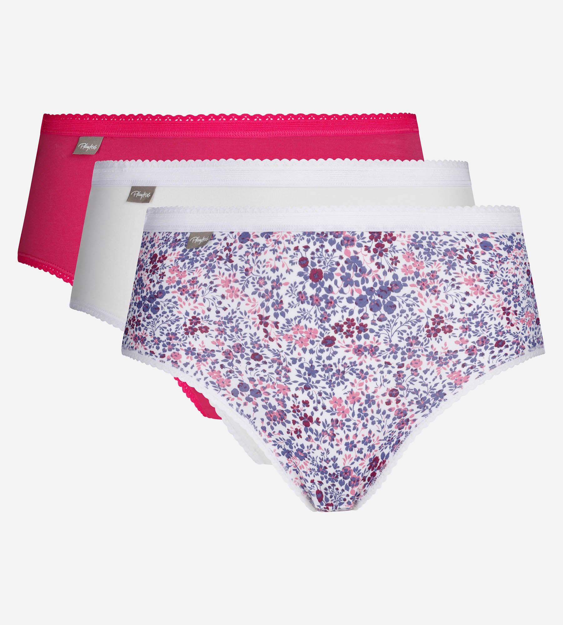 Découvrez la culotte Playtex® de la collection Cotton Stretch dans ce lot de 3. Les 3 coloris apportent une note vive et moderne à votre lingerie, tout en restant facile à assortir avec vos soutiens-gorge favoris. Le coton doux et extensible garantit un ajustement parfait, tandis que le petit croquet à la taille confère une touche d’élégance discrète. Avec sa coupe midi et sa couvrance parfaite sur le fessier, cette culotte est conçue pour rester invisible sous vos vêtements tout en offrant un galbe harmonieux et en assurance une agréable sensation au toucher.