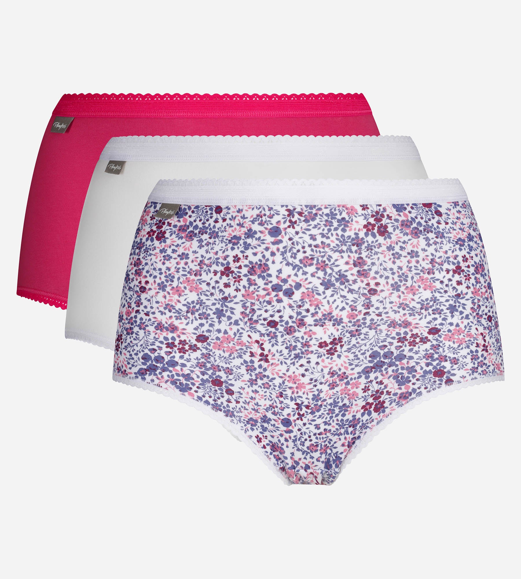 Lot de 3 culottes taille haute hibiscus, blanc et imprimé fleuri violet Cotton Stretch