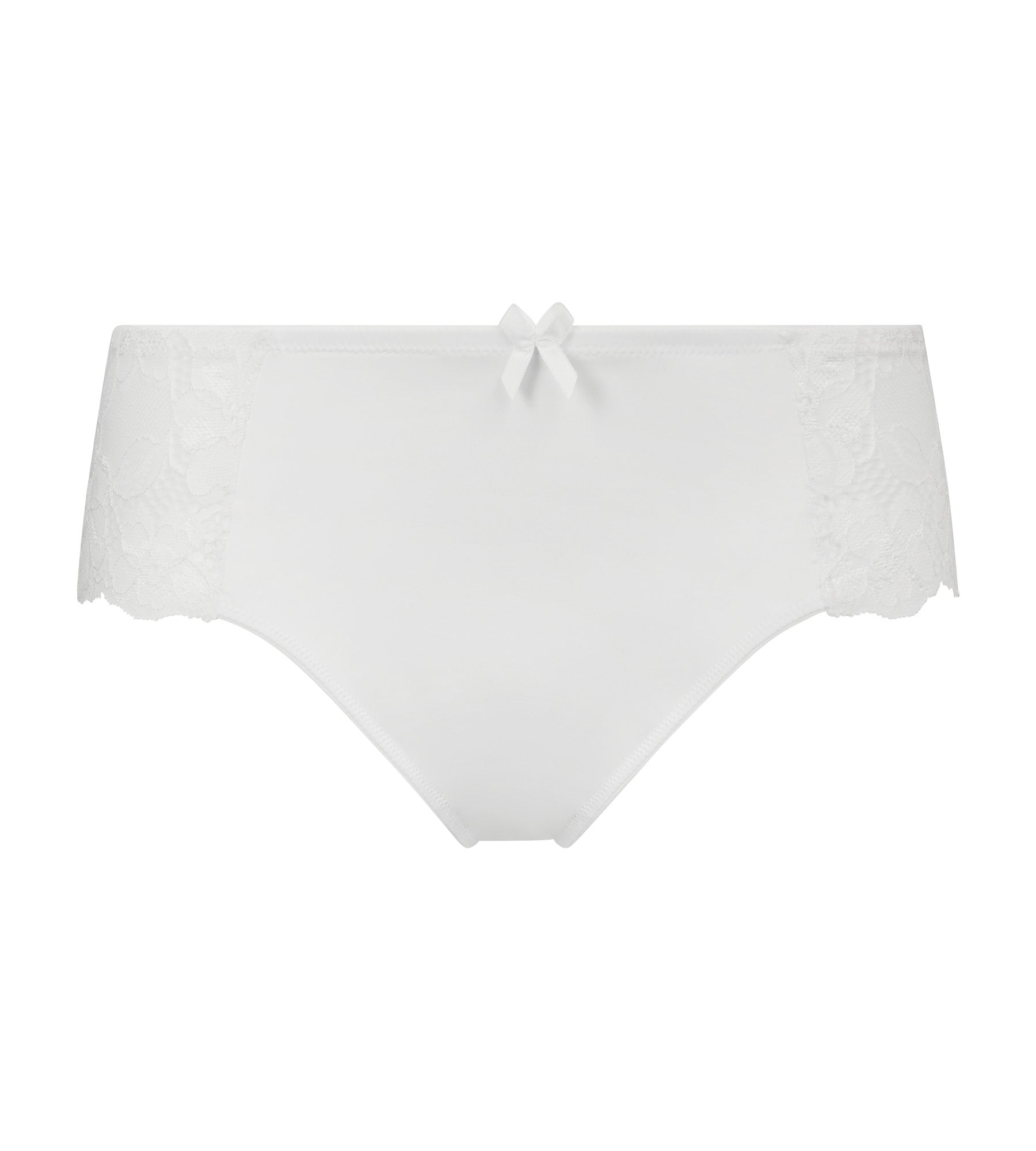 Vous allez être conquise par cette culotte en dentelle à la découpe mini blanche, élégante et confortable. Il est idéal de la porter avec le soutien-gorge corbeille blanc de la ligne Essential Elegance, pour un ensemble de lingerie hyper élégant.
