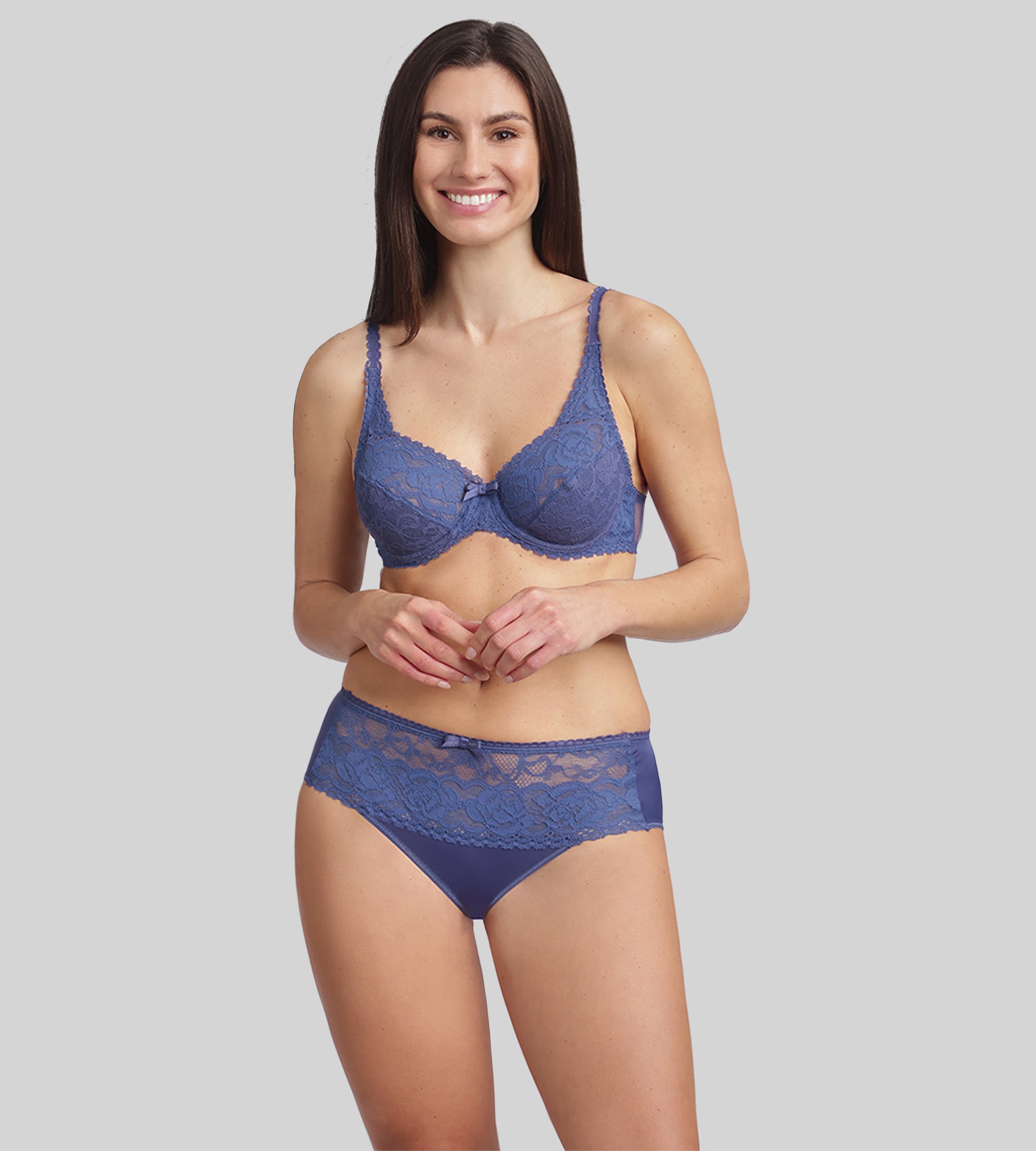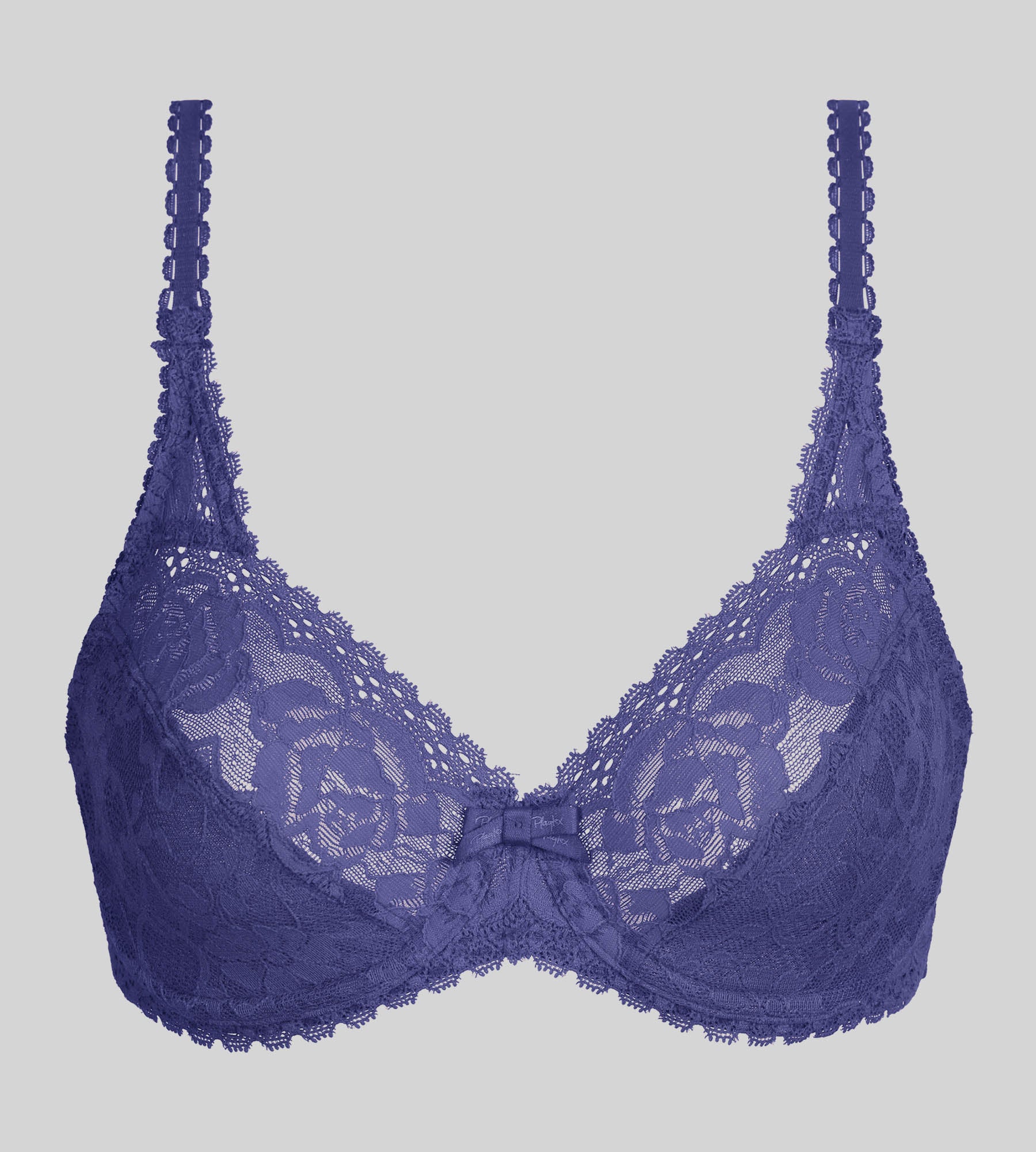 Craquez pour le soutien-gorge Flower Elegance Recyclé dans ce bleu cobalt, une teinte intense et lumineuse qui apporte fraîcheur et modernité à votre collection de lingerie. Ce modèle associe élégance intemporelle et maintien optimal, grâce à aux bonnets couvrants et une dentelle extensible ultra douce qui épouse la poitrine. Sa construction assure un excellent galbe, un rehaussement harmonieux et une forme naturellement arrondie. Pensé pour votre confort quotidien, ce soutien-gorge intègre de discrets coussinets sous les bras pour éviter la pression des armatures et offrir un bien-être durable tout au long de la journée. Ses détails satinés et sa dentelle florale raffinée soulignent un style féminin, parfait pour sublimer vos courbes. Complétez votre parure avec la culotte Flower Elegance Recyclé bleu cobalt, pour un ensemble harmonieux et élégant qui mettra en valeur votre féminité avec éclat. RCS – À base de 60% de polyamide recyclé – Contrôlé par ECOCERT Greenlife – PW France – n° EGL/229478
