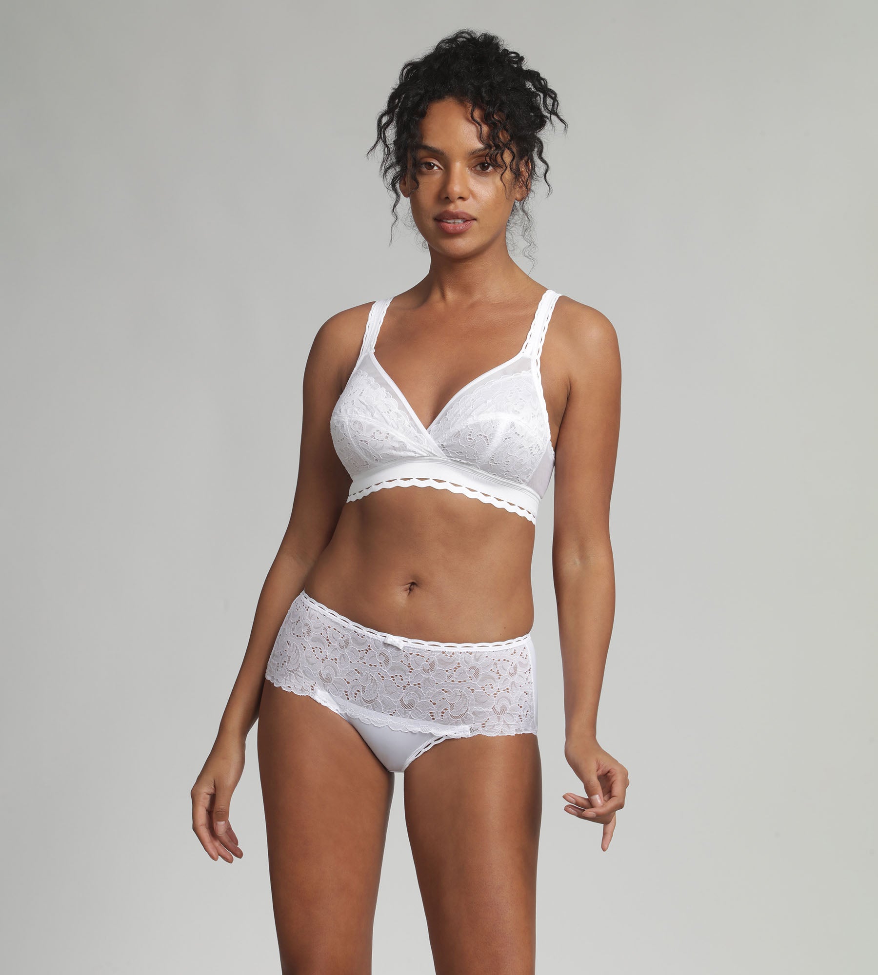 Adoptez une lingerie durable, responsable et féminine en combinant ce soutien-gorge sans armatures à la culotte blanche Cœur Croisé Recyclé.