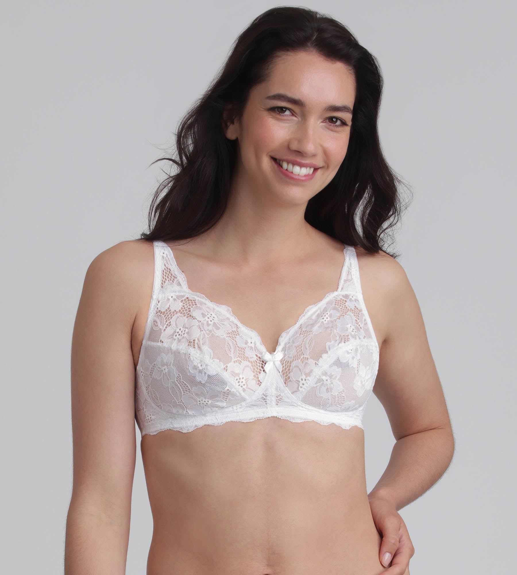Le soutien-gorge sans armatures en dentelle blanc de la ligne Essential Elegance va devenir une pièce maîtresse de votre dressing. Ce soutien-gorge emboîtant propose un confort absolu et un maintien irréprochable de la poitrine grâce à ses larges bretelles et sa structure dos en U. L'absence d'armatures vous offrira un confort absolu au quotidien. Cette pièce de lingerie est très féminine, une dentelle raffinée orne l'ensemble des bonnets, ainsi qu'un noeud plat apposé à l'entre-bonnet.