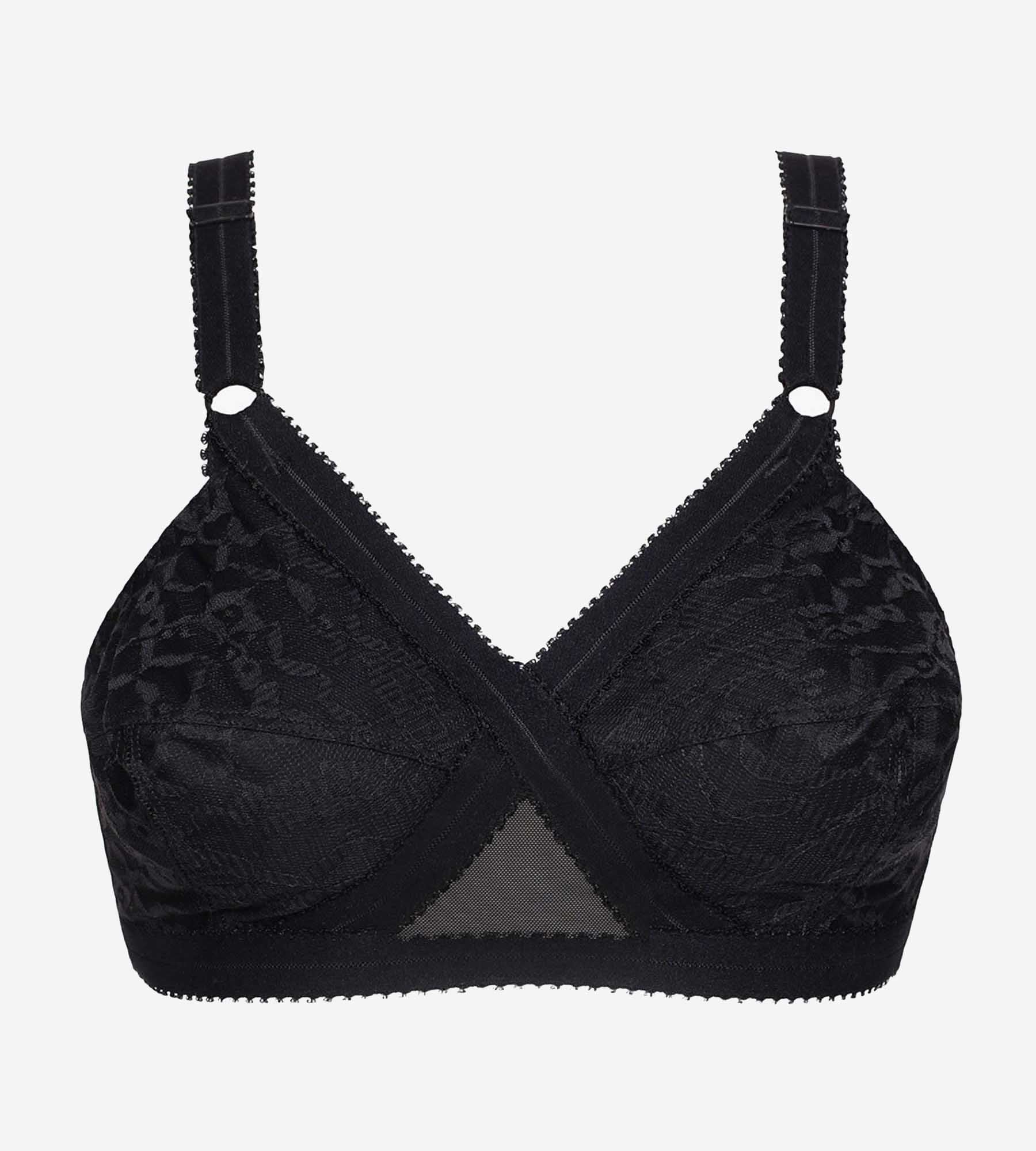 Le soutien-gorge noir sans armatures de la ligne Cœur Croisé 556 fait partie des pièces phares de la marque Playtex®. Son fameux maintien Cœur Croisé sans armatures offre un maintien vraiment irréprochable. Celui-ci est renforcé par des bretelles et entre-bonnets larges, des bonnets emboîtant et une matière dense recouverte d’une dentelle ton sur ton. En résumé, le maintien est parfait, le confort idéal et la féminité assurée.