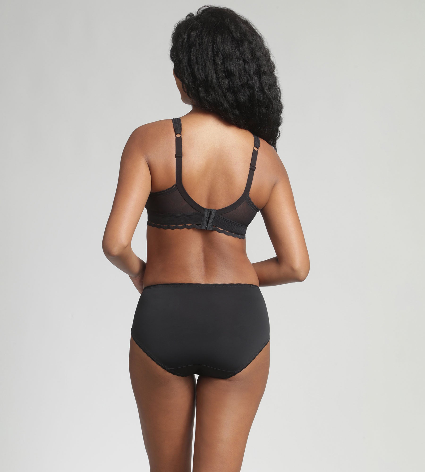 Vous allez adorer ce soutien-gorge noir Cœur Croisé Féminin Recyclé plus féminin et moderne que le précédent. Pour compléter l'ensemble nous vous conseillons la culotte en dentelle noire de la même collection.