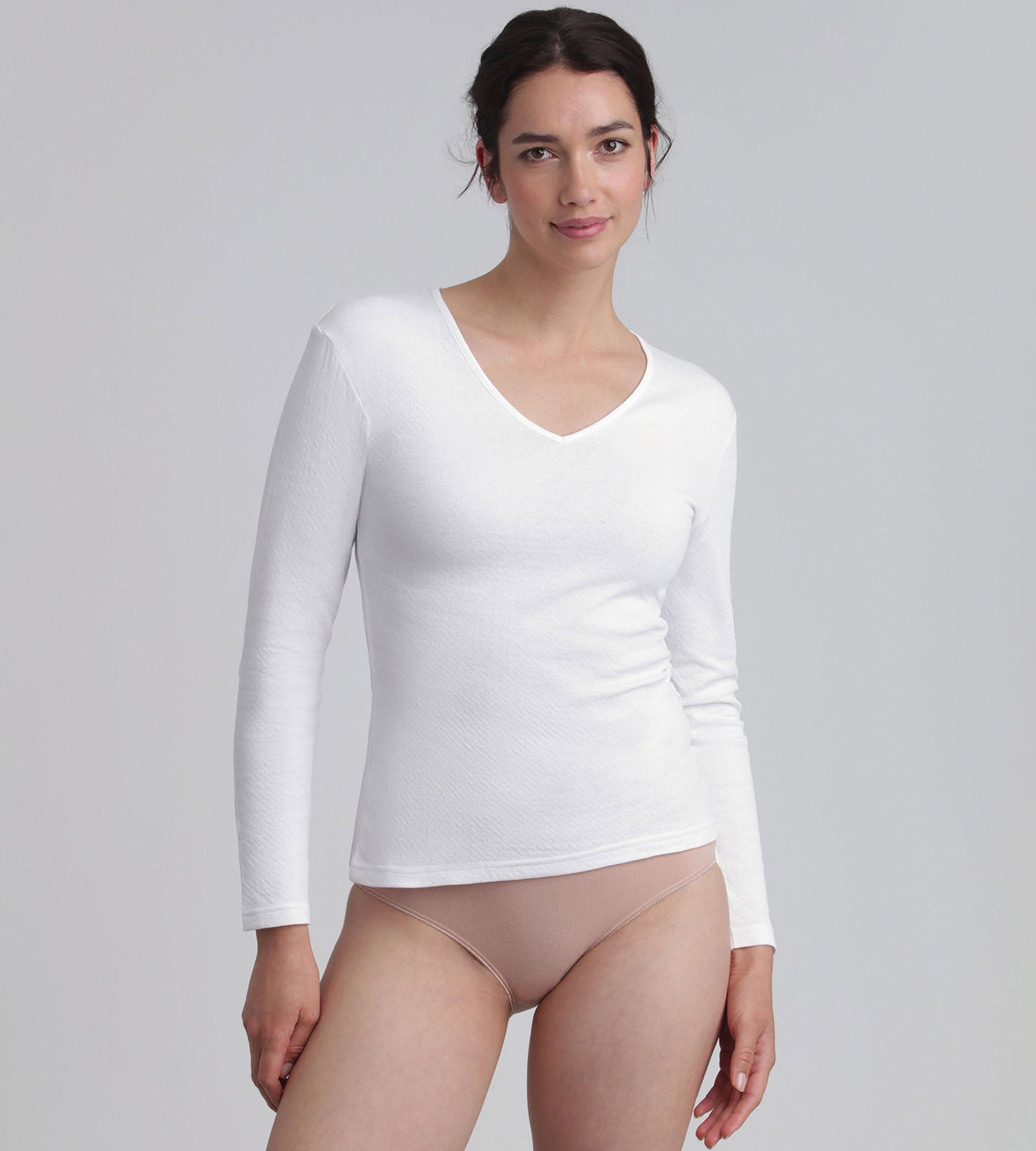 Il est temps de découvrir si ce n'est pas déjà fait le t-shirt de la ligne Thermal Natural, confectionné dans une matière 100% coton ultra stretch, alliant élégance et bien-aller. Avec sa coupe ajustée et son col V, ce T-shirt manches longues blanc de la ligne Thermal Natural offre une allure élégante et moderne. Sa matière en coton vous apportera une douceur optimale, un bien-être absolu, et son design intemporel s'adaptera à tous les styles : il pourra aussi bien se porter aussi bien avec un jean qu'avec une jupe. Conçu pour s'adapter à toutes les occasions, ce t-shirt est un essentiel de votre garde-robe ! Vous ne pourrez plus vous en passer, autant d'avantages qui vont vous ravir c'est certain.